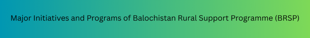 🚀Major Initiatives and Programs of Balochistan Rural Support Programme (BRSP)
