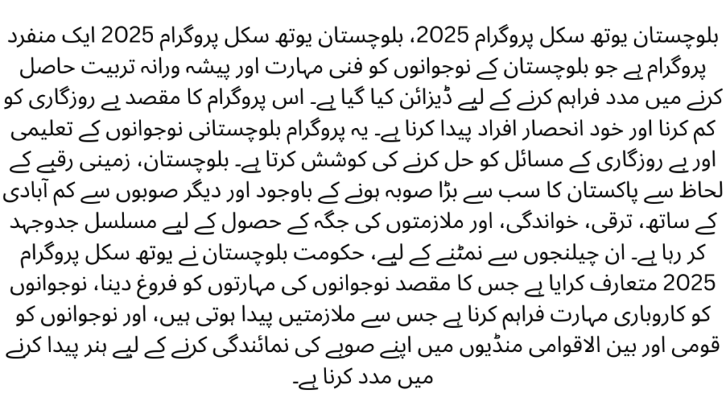 The Balochistan Youth Skill Program 2025 has a number of main objectives: