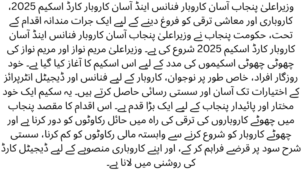The CM Punjab Asaan Karobar Finance & Asaan Karobar Card Scheme 2025ance & Card Scheme can fundamentally transform the economy of Punjab.