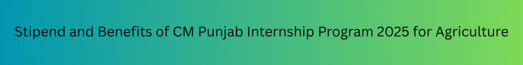 🌟Stipend and Benefits of CM Punjab Internship Program 2025 for Agriculture