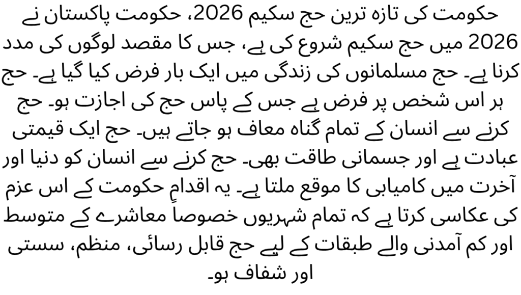 The Government Hajj Scheme 2026 reflects Pakistan’s sincere efforts to serve the religious aspirations of its people. For many people, Hajj is a dream which they want to see fulfilled, but due to lack of money and inflation, they could not arrange this great work. But due to this Hajj scheme of the government of Pakistan, millions of people are getting this oppurtunity.Interested individuals are encouraged to apply within the specified dates and make the most of this sacred opportunity.