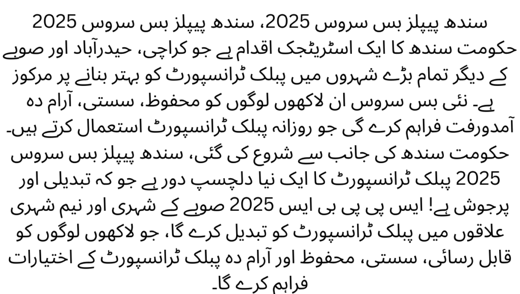 Sindh People Bus Service 2025,The Sindh People Bus Service 2025 is a strategic initiative by the Government of Sindh focused on improving public transport in Karachi, Hyderabad and all other large cities in the province. The new bus service will provide safe, inexpensive, comfortable transportation to millions of people who use public transport every day.Launched by the Government of Sindh, the Sindh People Bus Service 2025 is a new exciting era of public transport that is transformative and ambitious! SPPBS 2025 will change public transport in urban and semi-urban areas of the province, providing accessible, affordable, safe and comfortable public transport options to millions of people.